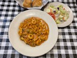 Onions, roasted peppers, mushrooms, jalapenos, garlic in a sherry wine pink sauce. From 11 am to 3 pm on Tuesday through Friday.
